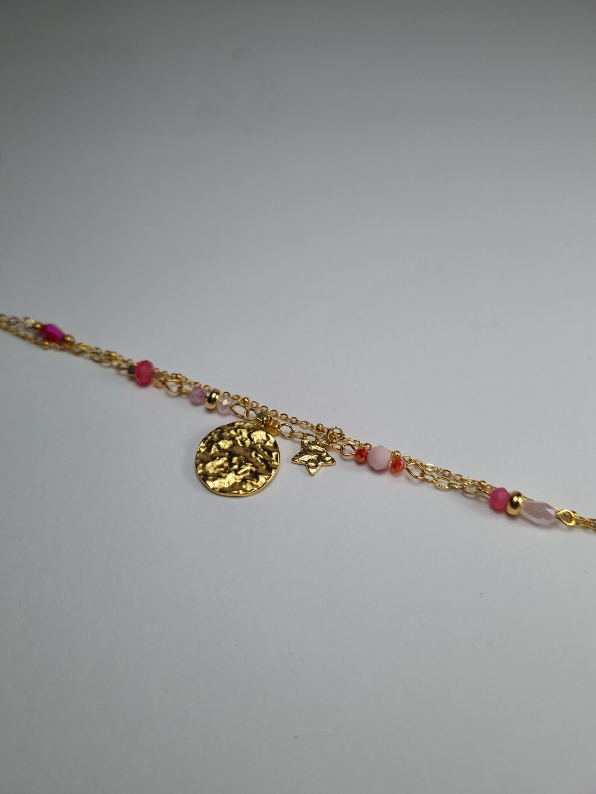 Bracciale doppia catenella con stella e placca schiacciata